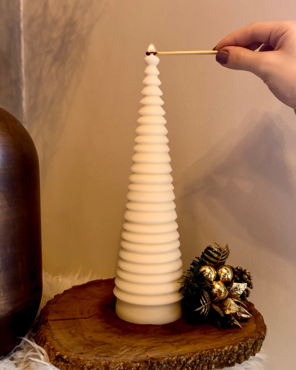 São 25 camadas de cera que formam uma árvore de Natal de mais de meio quilo, para que você acenda uma chama por dia: do 1 ao 25 de dezembro, acompanhando o tempo de espera até a celebração do Natal.