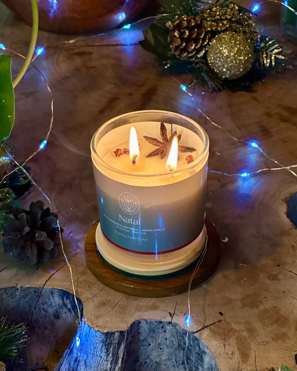 Contém aroma de Vanilla, que preenche a casa toda (mesmo!) com suas notas doces e com leve toque de especiarias (a cara do Natal).